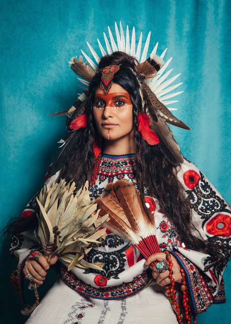 "Marta Lamovsek’s art practice is deeply rooted in connecting beings to their higher self-consciousness through an immersive experience that melds transformative portraiture art with spiritual awakening. Her works are more than just portraits; they are visual narratives that celebrate unity consciousness while honoring Mother Earth and promoting equality across cultures. Drawing from her background in fashion photography and inspired by global cultural traditions, Lamovsek seeks to transcend social identities through her art, which gazes "into the heart, the soul, and the divinity of all multidimensional beings."